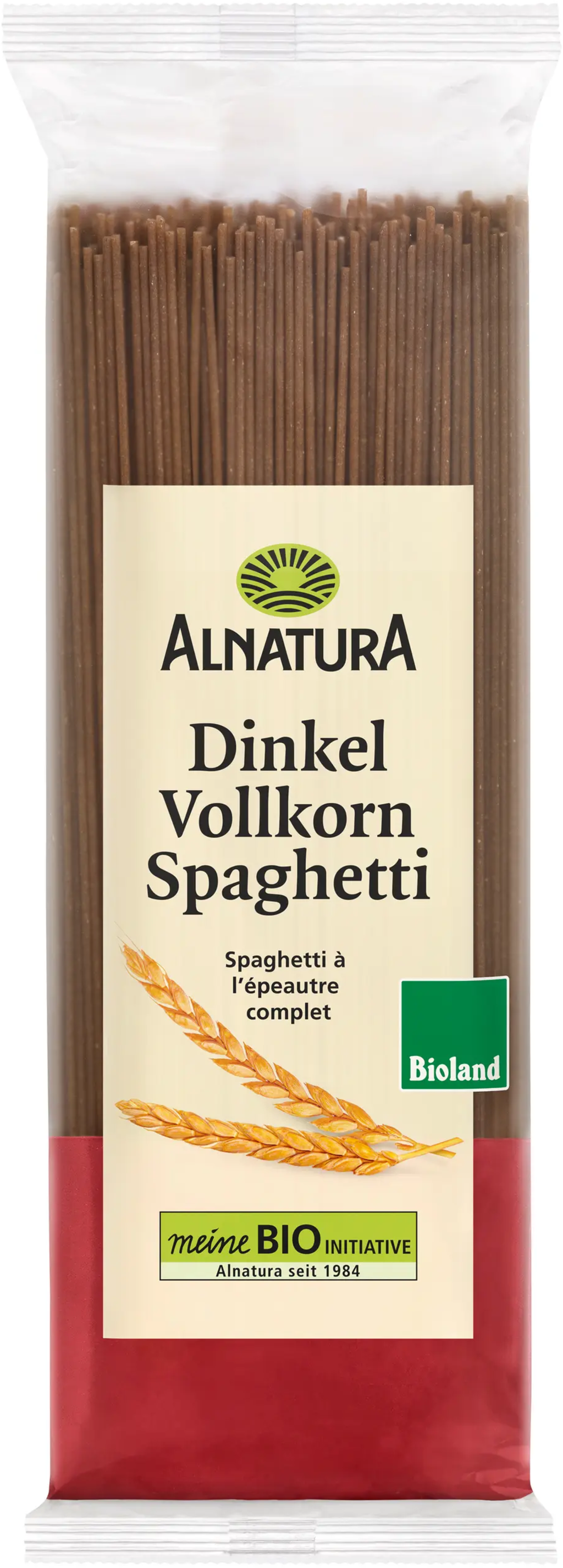 Polnozrnati špageti Alnatura izvirajo iz skrbne proizvodnje družinskega podjetja. Vsebujejo samo nemško ekološko piro, pridelano v skladu s strogimi smernicami Bioland. Seveda je recept veganski.