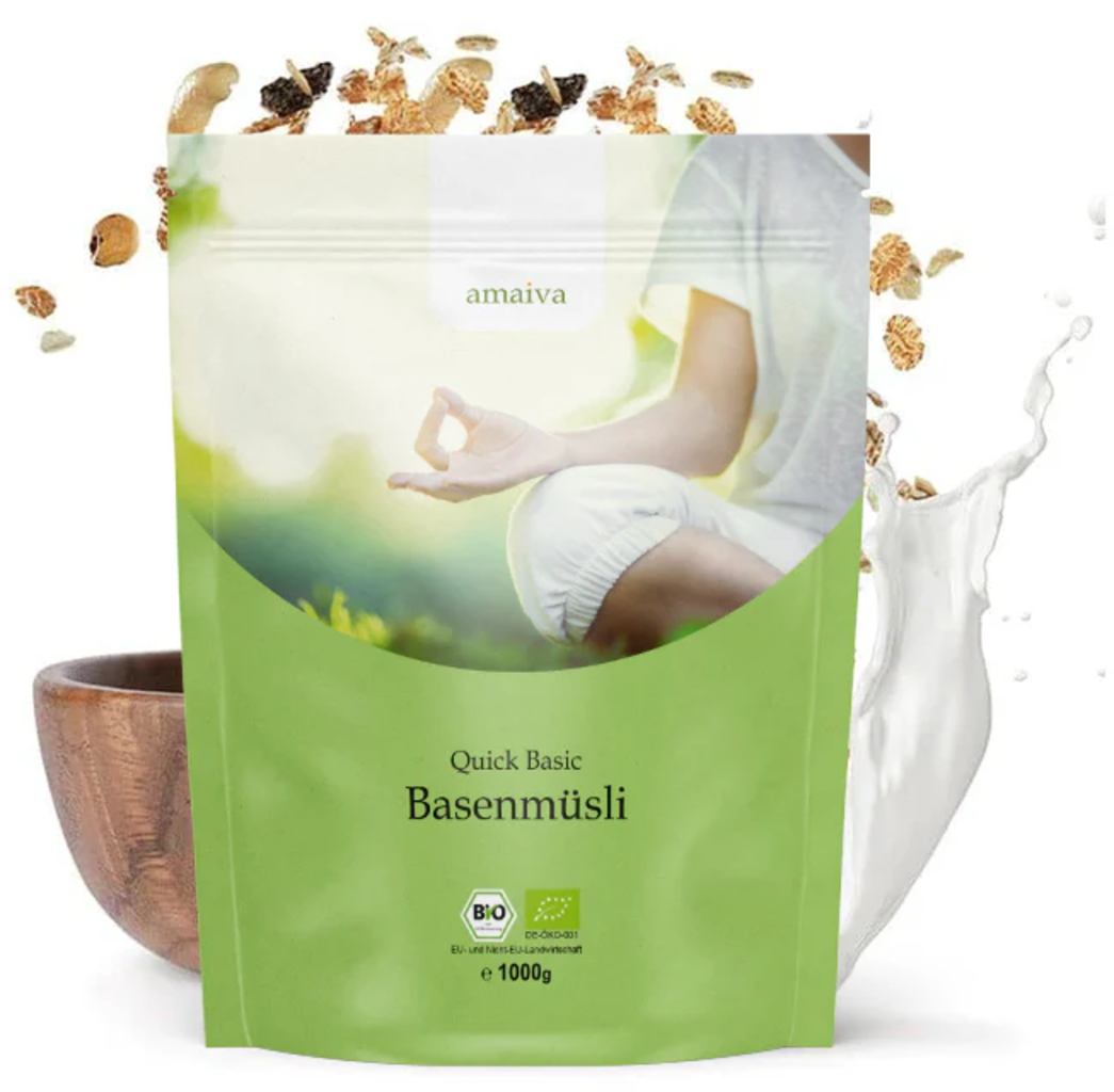 Alkalni müsliji združujejo različne bio pridelane rastlinske sestavine, kot so ajdovi kosmiči, sojini kosmiči, napihnjenčki iz amaranta, chia semena in tigrovi oreščki. Recept je zasnovan tako, da zagotavlja uravnoteženo osnovo za müslije in je idealen za hranljiv začetek dneva. Müslije lahko pripravite klasično z vodo ali rastlinskim mlekom in jih prilagodite svojim željam.