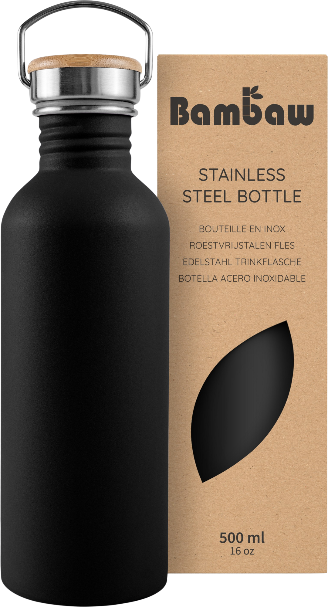 Bambaw Steklenica iz nerjavečega jekla 500 ml, Jet Black