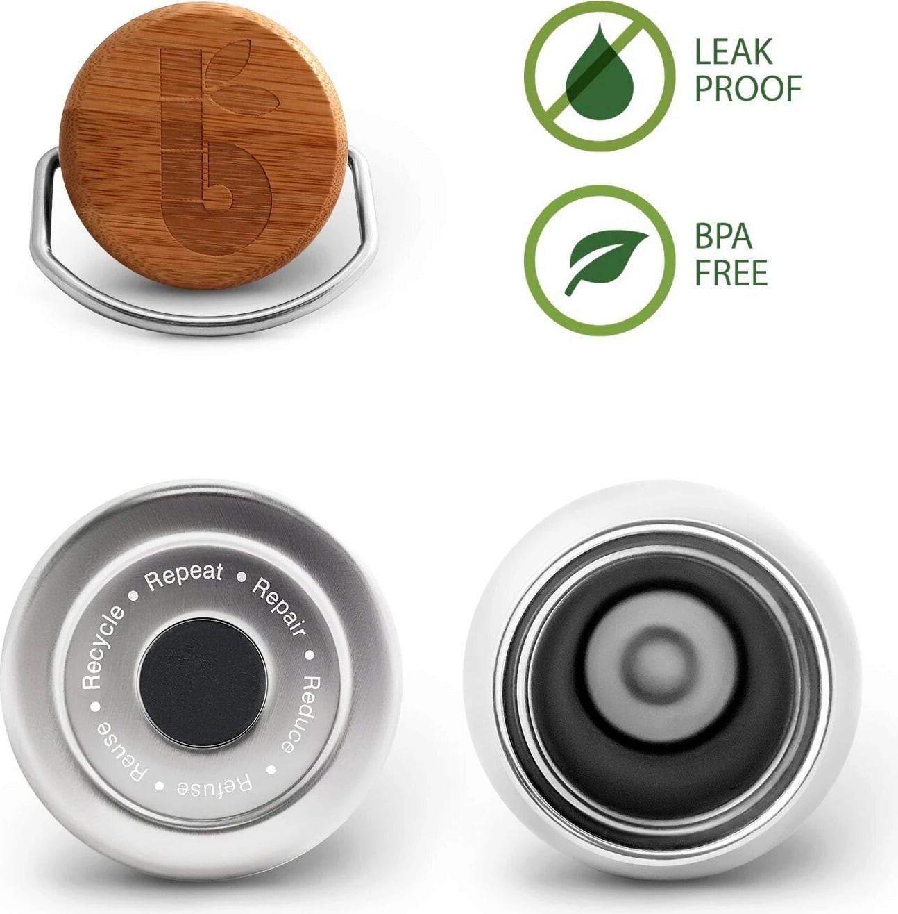 Termovka z nerjavečega jekla je popoln spremljevalec skozi celo leto. Termovka v poletnih dneh pijačo hladi do 24 ur, pozimi pa do 12 ur toplo. Steklenica je zaprta z bambusovim pokrovom, odprtina pa je dovolj velika, da se vanjo prilegajo kocke ledu, čaji ali sadje. Ko je steklenica prazna, jo lahko enostavno očistite s krtačo za steklenice. Prav tako je varna za vaše zdravje in brez BPA, zato v vašo pijačo ne zade nobena strupena kemikalija.