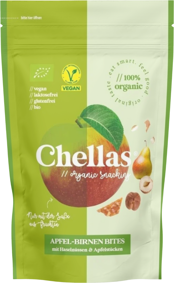 Izkušnenj v jeziku slovenščina za izdelek Chellas Bio bites - jabolka in hruške