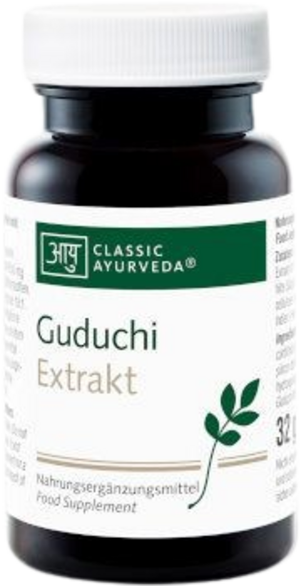 Ta izdelek znamke Classic Ayurveda vsebuje izvleček gudučija (Tinospora cordifolia). Kapsule so zasnovane tako, da zagotavljajo 650 mg rastlinskega izvlečka rastline na dnevni odmerek, kar ustreza 17,6 mg grenkih snovi. Razmerje ekstrakcije 10:1 zagotavlja koncentrirano obliko sestavin v vegetarijanski kapsuli iz hidroksipropilmetilceluloze.