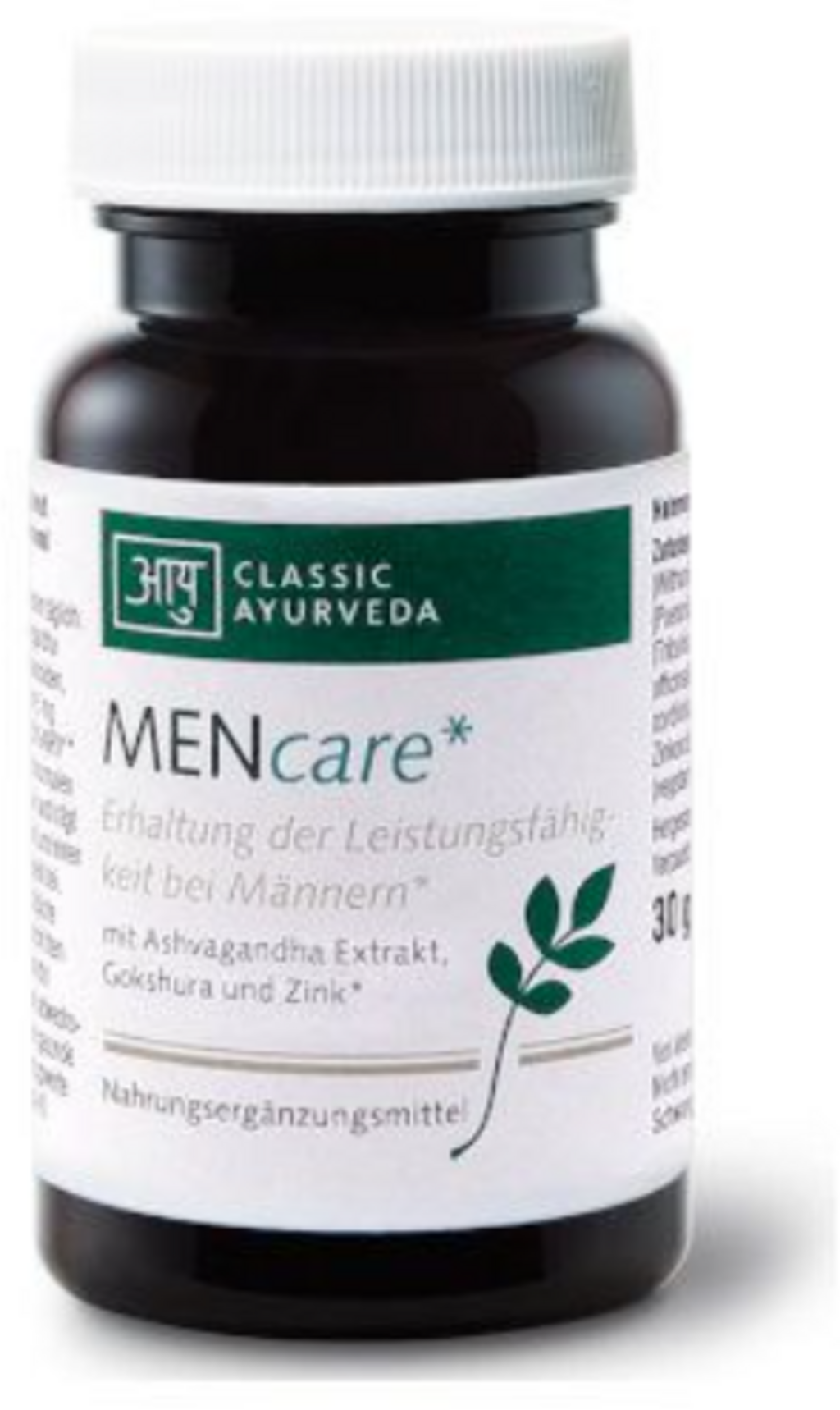 Kapsule MENcare znamke Classic Ayurveda združujejo zeliščne izvlečke in element v sledovih cink. Formula vsebuje ashvagandho, gokshuro in vidari kando ter izvlečke amle, guduchija in shilajita. Ta sestava je bila posebej zasnovana za dopolnitev moške prehrane.