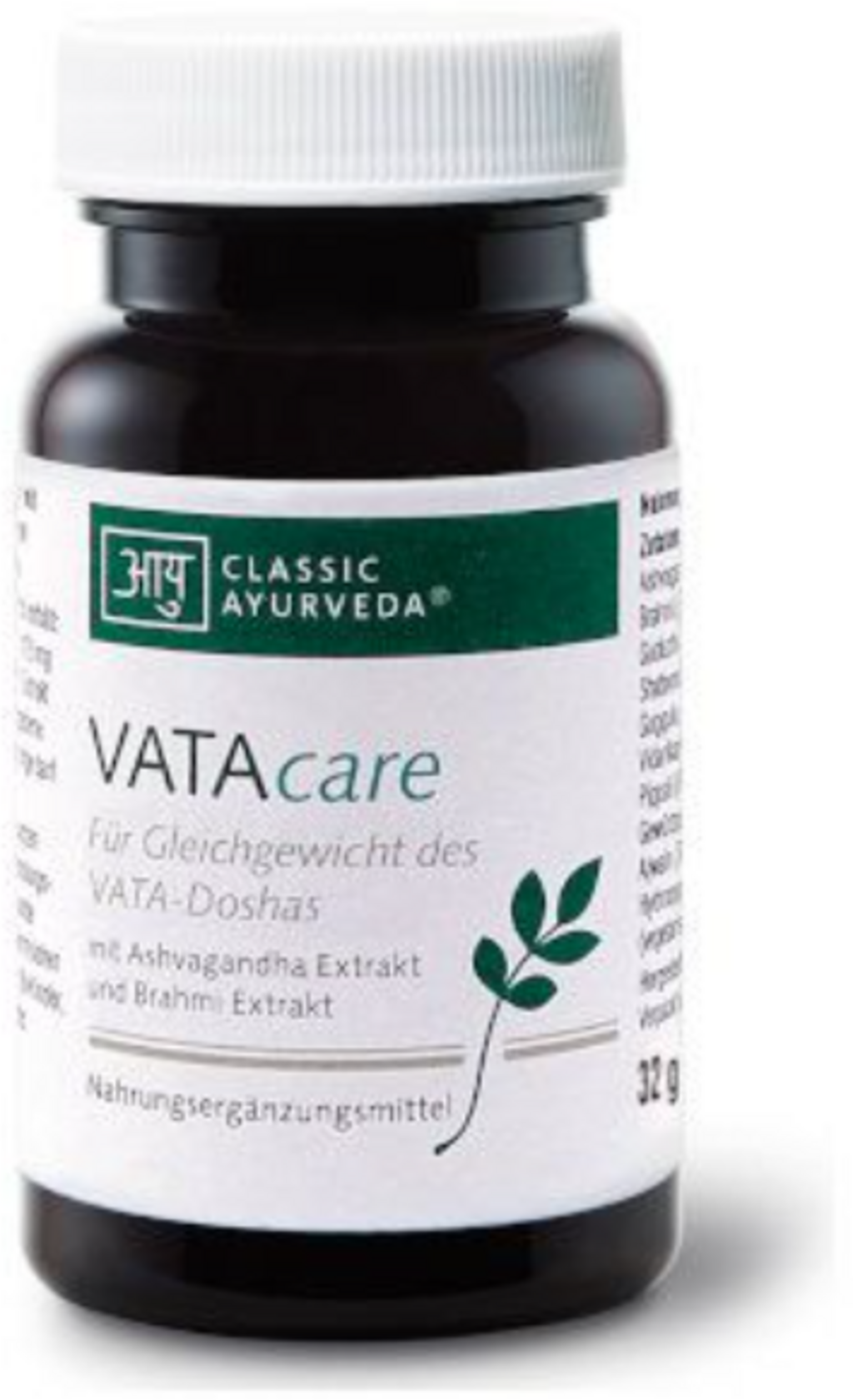Kapsule VATAcare podjetja Classic Ayurveda ponujajo tradicionalno usklajeno kombinacijo indijskih rastlinskih izvlečkov. Formula temelji na ashvagandhi in brahmi, ki jih dopolnjujejo shatavari, tulsi, guduchi in guggulu ter vidarikand. Mešanico dopolnjujejo začimbe trikatu: pippali, poper in ingver.