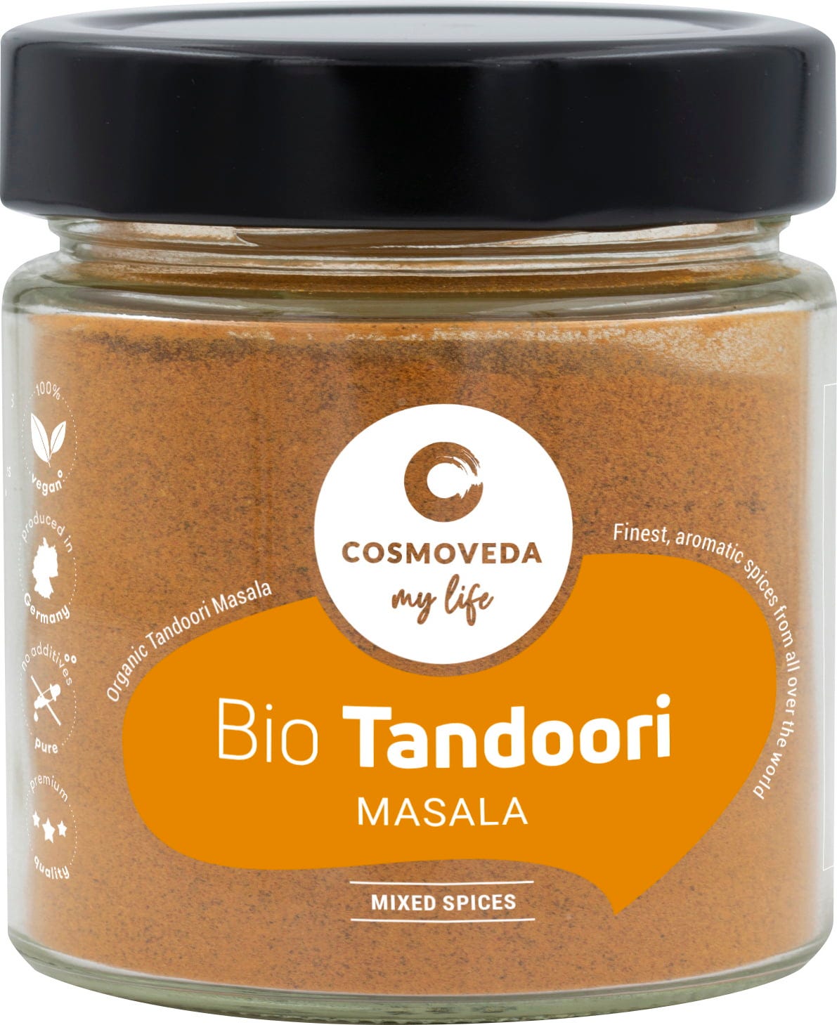 COSMOVEDA tandoor Masala specialno uravnotežena ayurvedska mešanica skrbno izbranih začimb za okusen Tandoos. Pirmerno tudi za mariniranje.