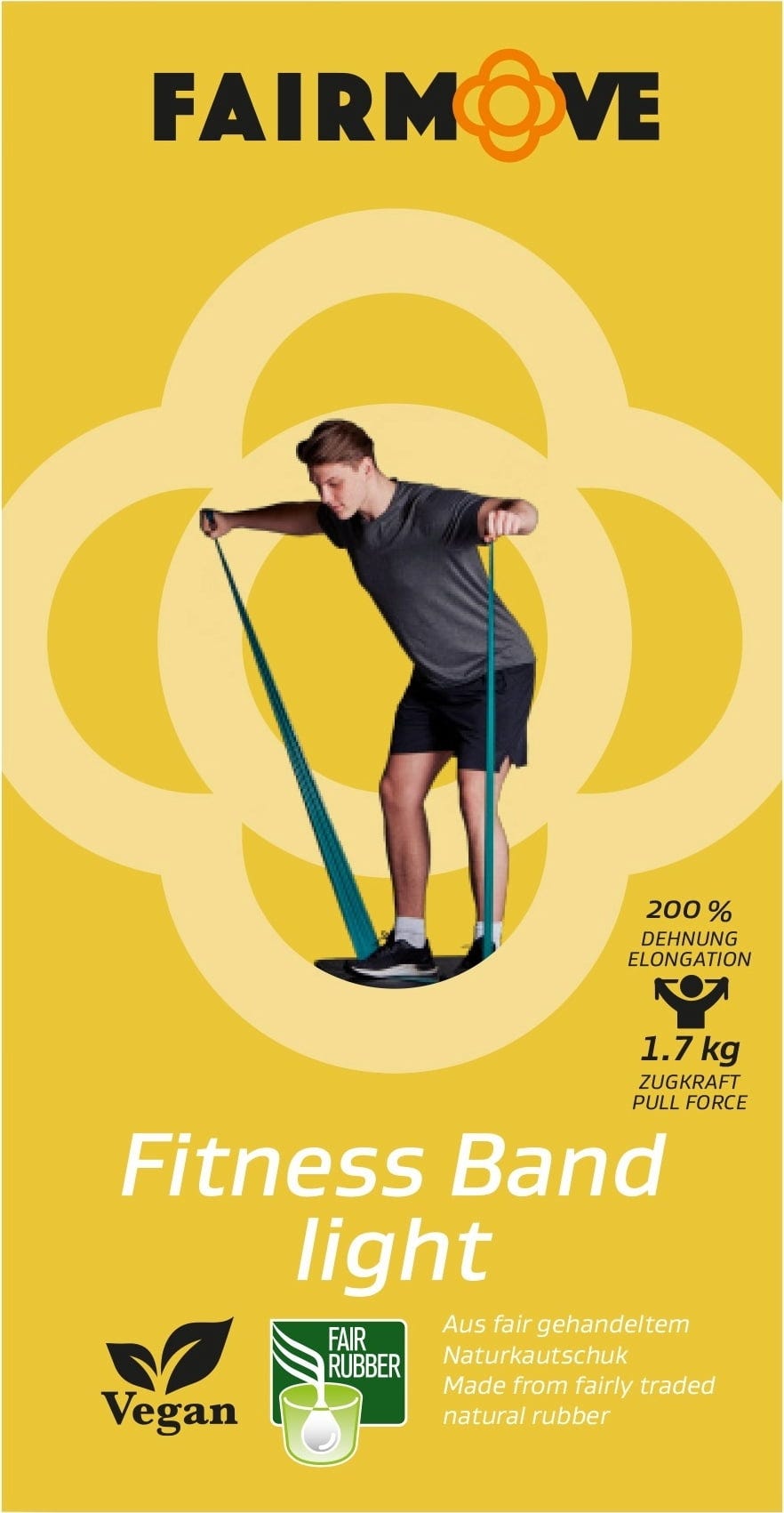 Ta vadbeni trak znamke FAIR MOVE je vsestranski pripomoček za raztezanje celotnega telesa, krepitev moči in izboljšanje ravnotežja - kot nalašč za fitness, jogo, pilates ali kateri koli drug vadbeni program, ki ga imate radi. Izkusite vrhunsko kakovost in odpornost tega trpežnega materiala! Ne le, da ne vsebuje plastike in mehčalcev, temveč je izdelan tudi iz 100 % naravnega, pravično trgovanega kavčuka iz Šrilanke. Vadbo lahko izvajate povsem z mirno vestjo, saj se ta popolnoma veganski trak po dolgi življenjski dobi celo razgradi, ne da bi za sabo pustil kakršne koli ostanke.