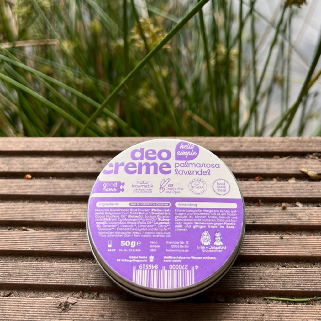 hello simple "Save the Oceans" kremen deodorant palmarosa in sivka, 50 g
