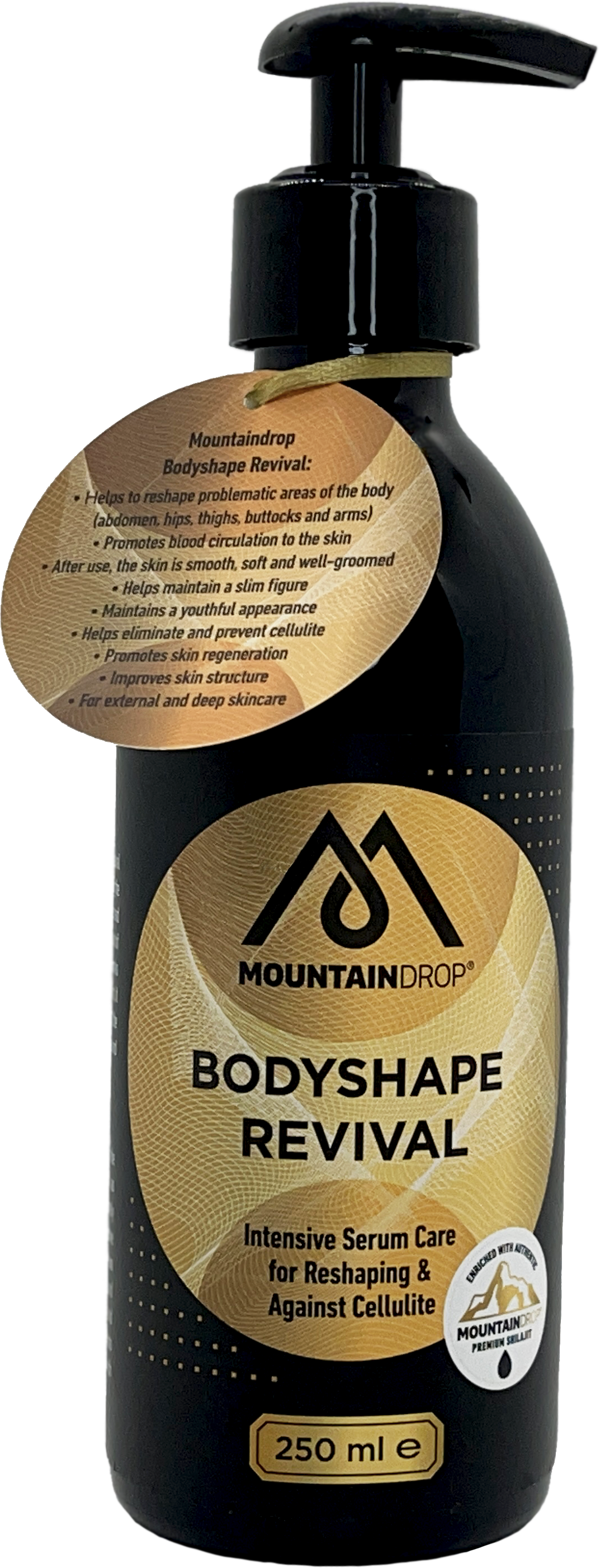 Bodyshape Revival znamke Mountaindrop je gel za telo za ciljno nego površine kože. Z minerali bogat vrhunski šilajit kožo oskrbi z redkimi elementi v sledovih, mentol pa ob nanosu zagotavlja opazen občutek svežine. Glicerin in aloe vera podpirata zaloge vlage v povrhnjici. Zaradi lahke konsistence se gel popolnoma vpije, koža pa je gladka in nahranjena brez lepljivosti.