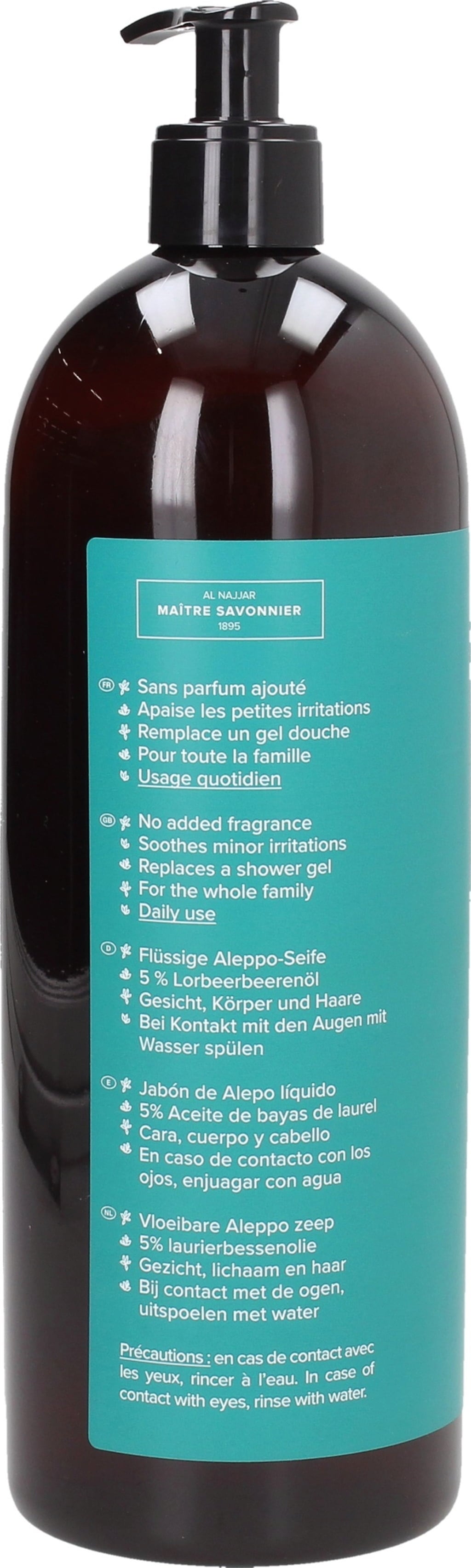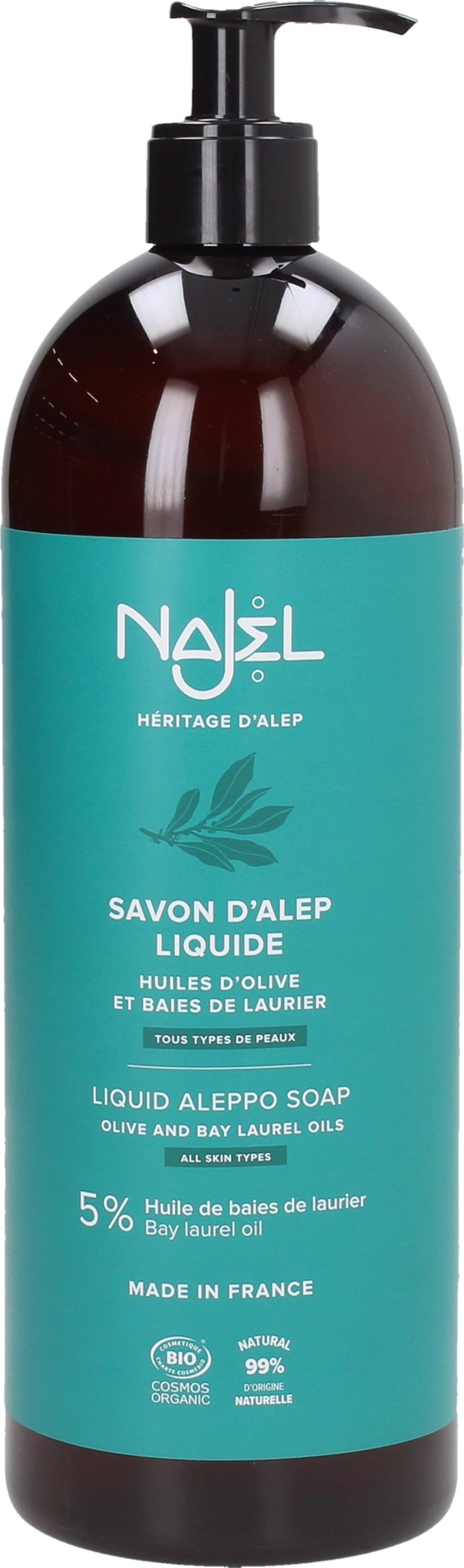 Odkrijte pravo alepsko milo v tekoči obliki, ki je primerno tudi za suho, občutljivo in razdraženo kožo. Gre za pristen izdelek, ki je znan po vsem svetu. Najel jih prideluje izključno z bio oljčnim oljem in bio oljem lovorove jagode, da bi lahko zagotovil naravni izdelek izjemne kakovosti. S tem milom Aleppo odkrijte vso obrtniško spretnost sirskih mojstrov izdelovalcev mila!