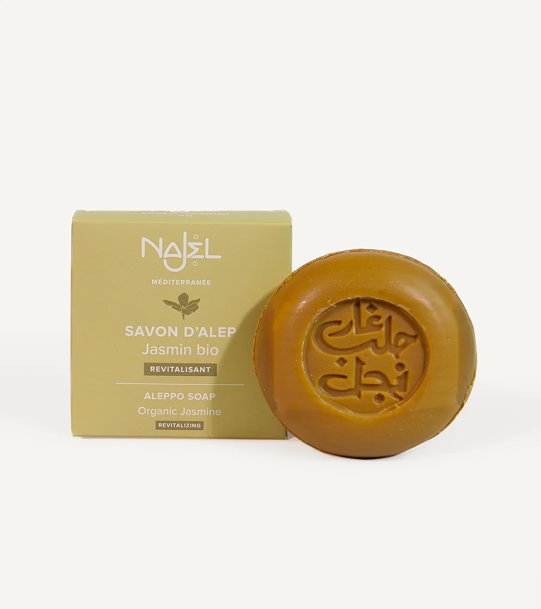 Okroglo Aleppo milo iz Najel kolekcije združuje tradicionalno izdelavo aleppo mila z nežnim vonjem jasmina.