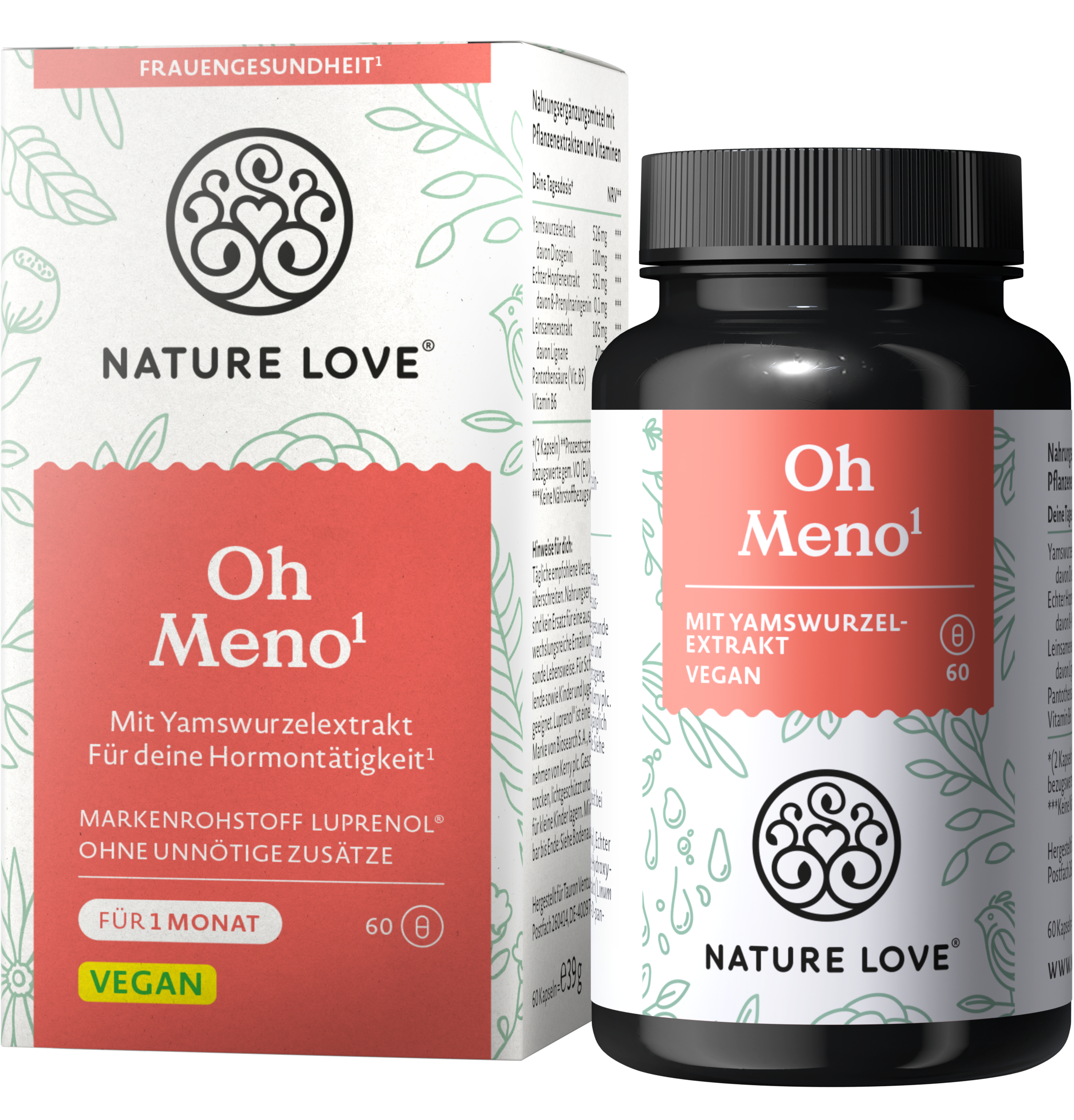 Med menopavzo ima telo posebne zahteve in želja po ravnovesju je velika. Zato kapsule Oh Meno znamke Nature Love podpirajo ženske prav v tem življenjskem obdobju. Kapsule so 100% veganske in obogatene z izvlečki hmelja, korenine jama in lanenega semena ter dragocenimi vitamini skupine B, ki vam zagotovijo najboljšo celostno in optimalno podporo.