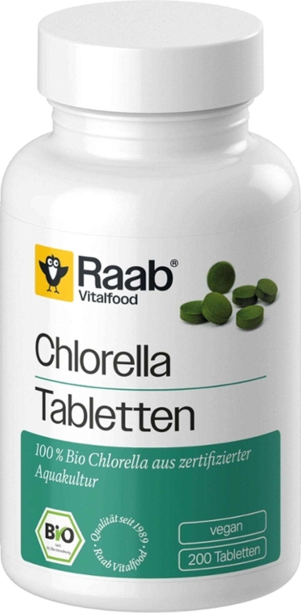 Bio Chlorella tablete znamke Raab Vitalfood so narejene iz 100 % čistih mikroalg Chlorella v prahu iz certificiranega ekološkega ribogojstva. Tablete ne vsebujejo dodatkov in ponujajo priročen način za vključitev alg v vaše vsakdanje življenje.