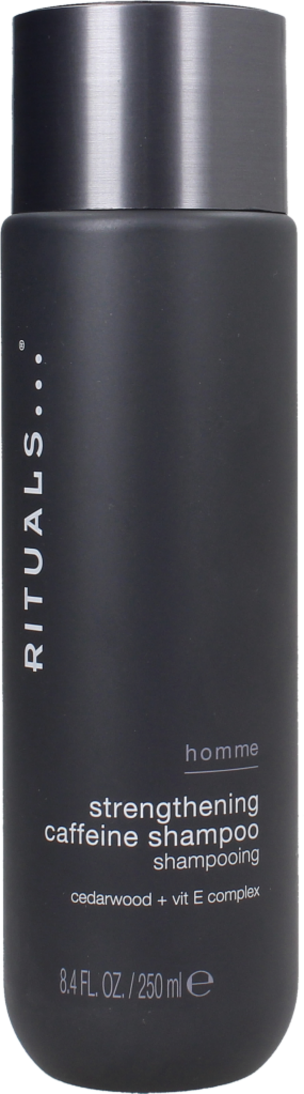 Homme šampon znamke RITUALS je zaradi svoje blage sestave primeren za vse tipe las in kože. Vsebuje kofein in rdeči ginseng, ki lahko okrepita lase in podpirata njihovo rast. Kompleks iz cedrovega lesa in vitamina E, ki je bogat z antioksidanti, poskrbi za popoln občutek kože. Aromatična dišava je sestavljena iz različnih zeliščnih in lesnih not ter odlično zaokroži šampon.