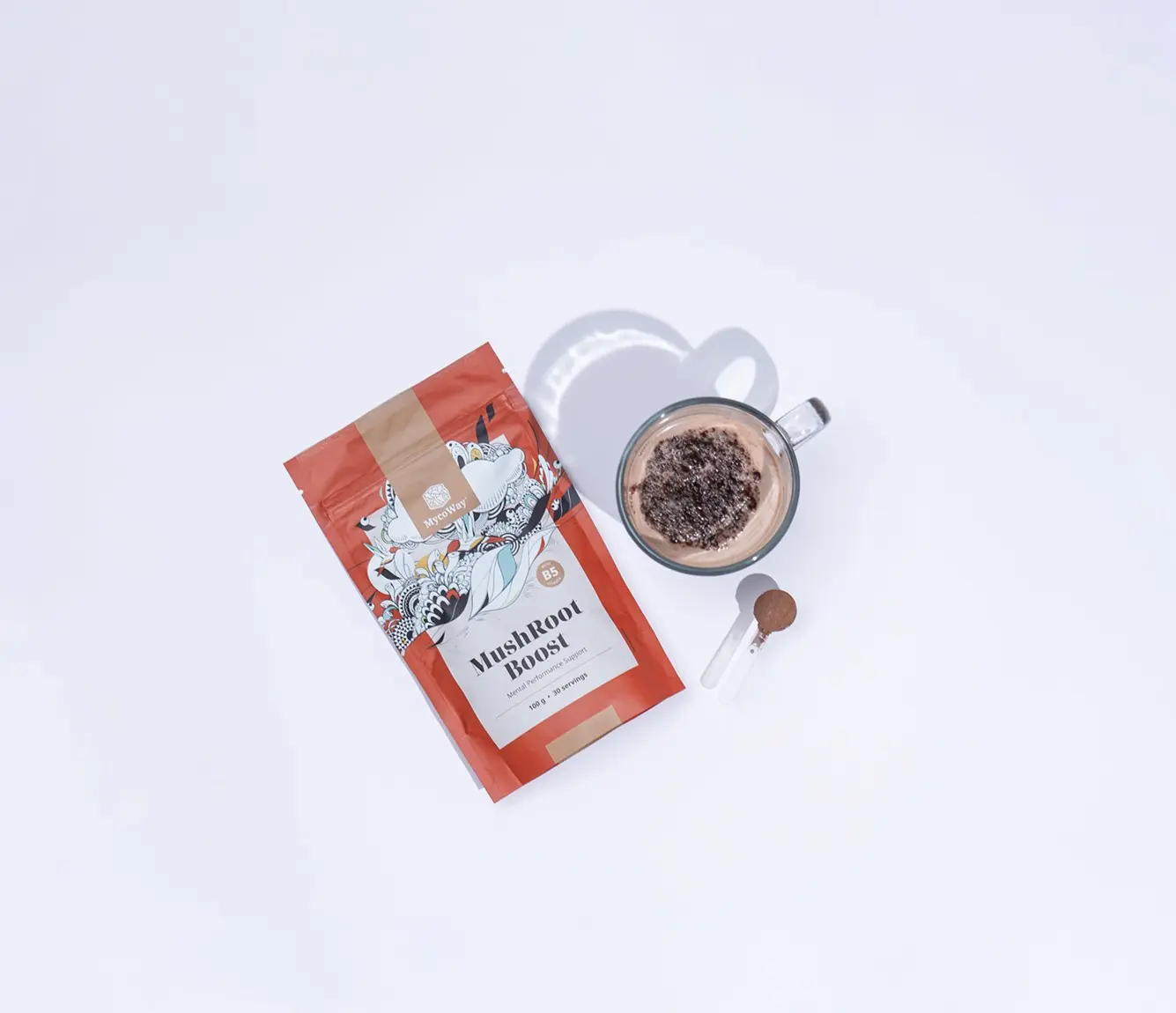 Ta napitek v prahu ponuja skrbno premišljeno kombinacijo treh izvlečkov vitalnih gob in izbranih rastlinskih snovi, kot so maca, yerba mate, rozni koren in ginseng. Zasnovan je kot alternativa običajni kavi in vam zagotavlja podporo skozi ves dan. Vitamin B5, ki ga vsebuje, podpira vašo duševno zmogljivost ter pomaga zmanjšati utrujenost in izčrpanost.