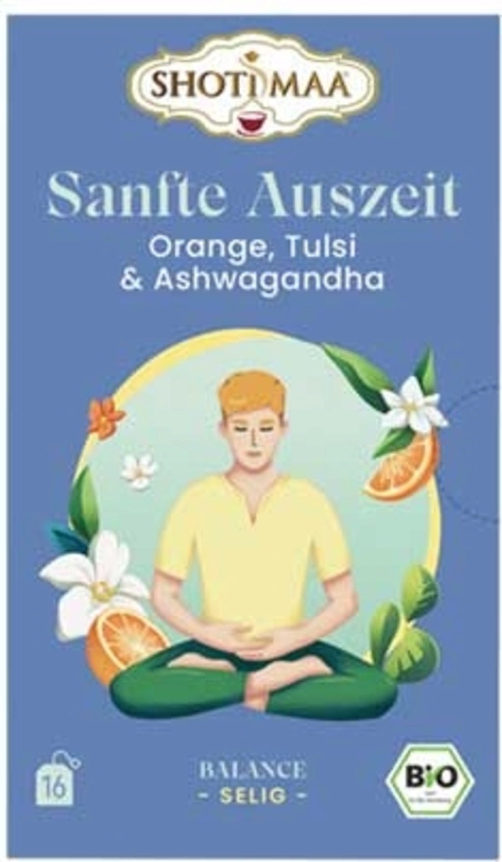 SHOTI MAA Bio čaj "Nežen oddih" - pomaranča, sveta bazilika in ašvaganda, 16 čajnih vrečk (32 g)