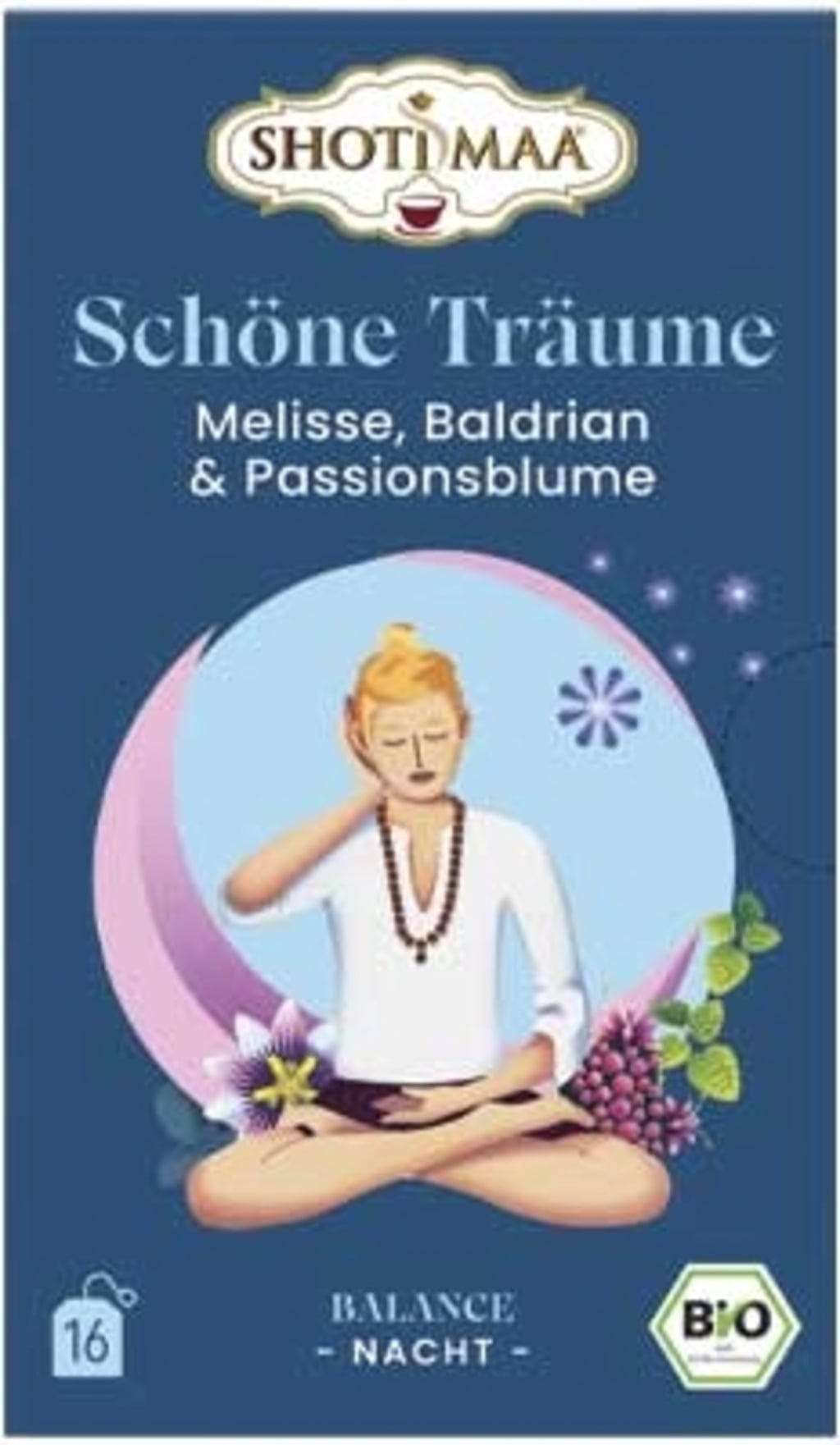SHOTI MAA Bio čaj "Sladke sanje" - melisa, baldrijan in pasijonka, 16 čajnih vrečk (32 g)
