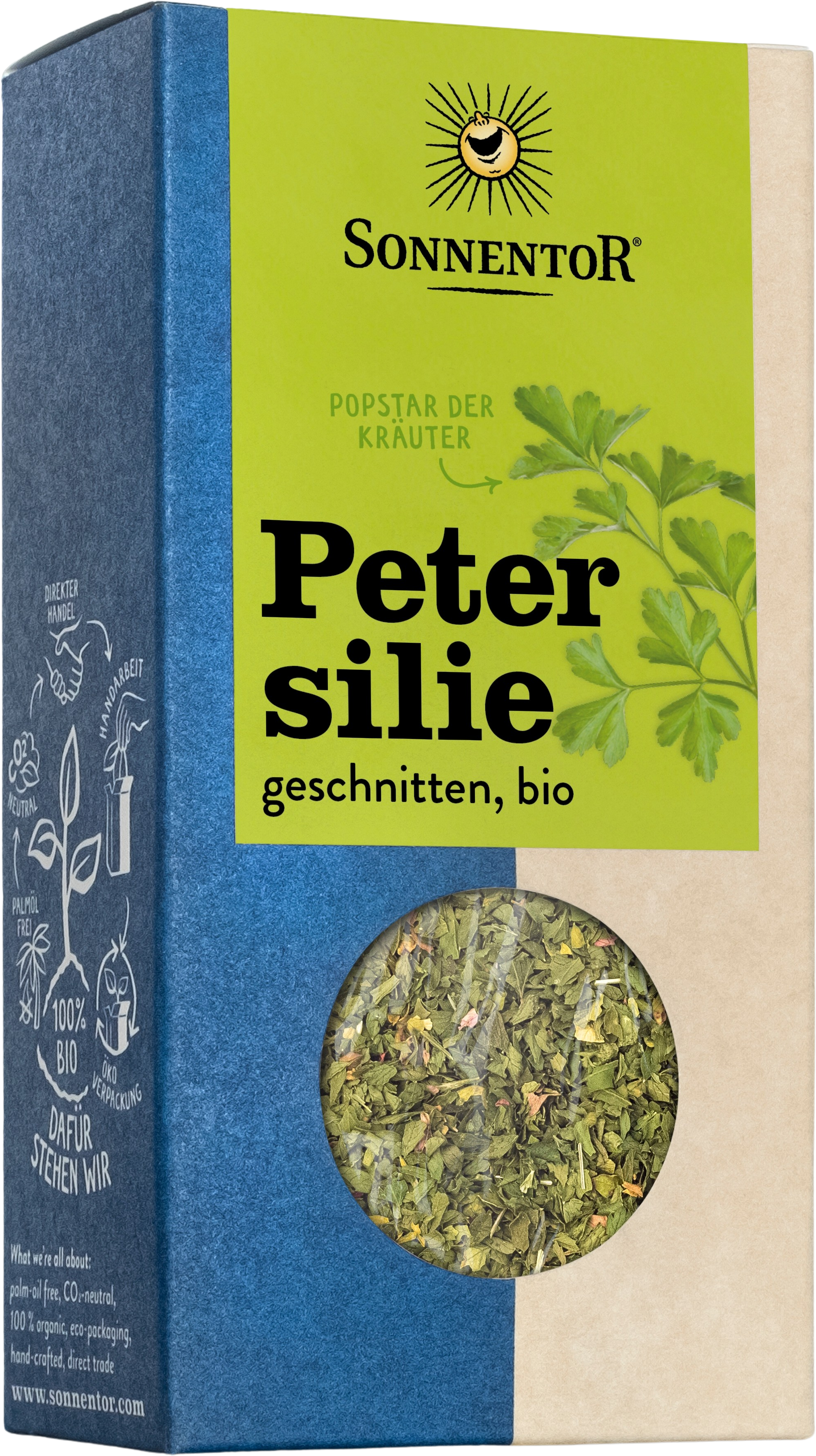 Peteršilj je univerzalna kuhinjska začimba. Ima blago pikantno-sladki okus s svežo noto janeža v ozadju.