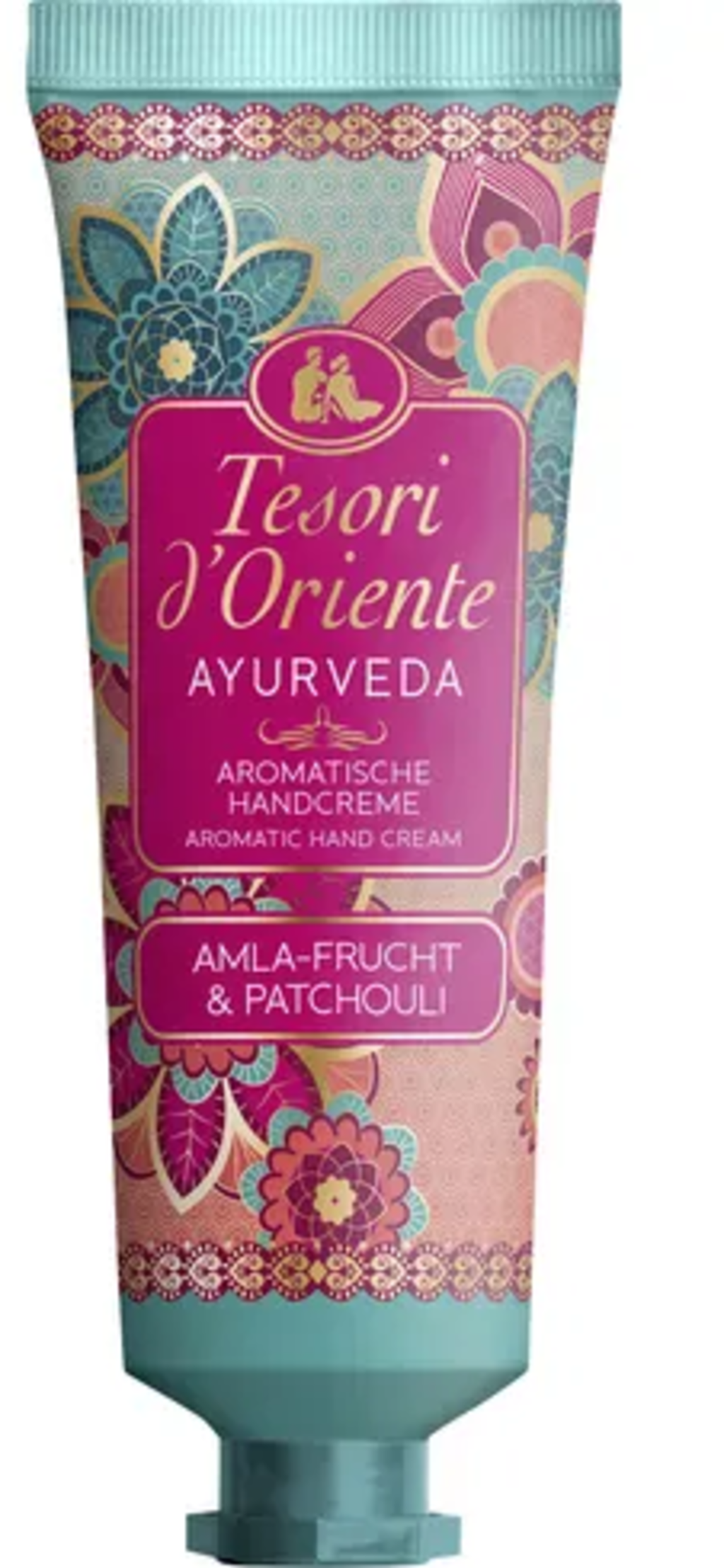 Ayurveda krema za roke znamke Tesori d'Oriente je poklon indijski življenjski filozofiji, ki vzpostavlja notranje ravnovesje. Kombinacija dragocenih sestavin, kot so izvleček plodov amle in sezamovo olje po ajurvedski tradiciji ter aloe vera in ognjič, vas bo očarala. Harmonična dišava sladke pomaranče, limone in pačulija dopolnjuje kremo za roke.